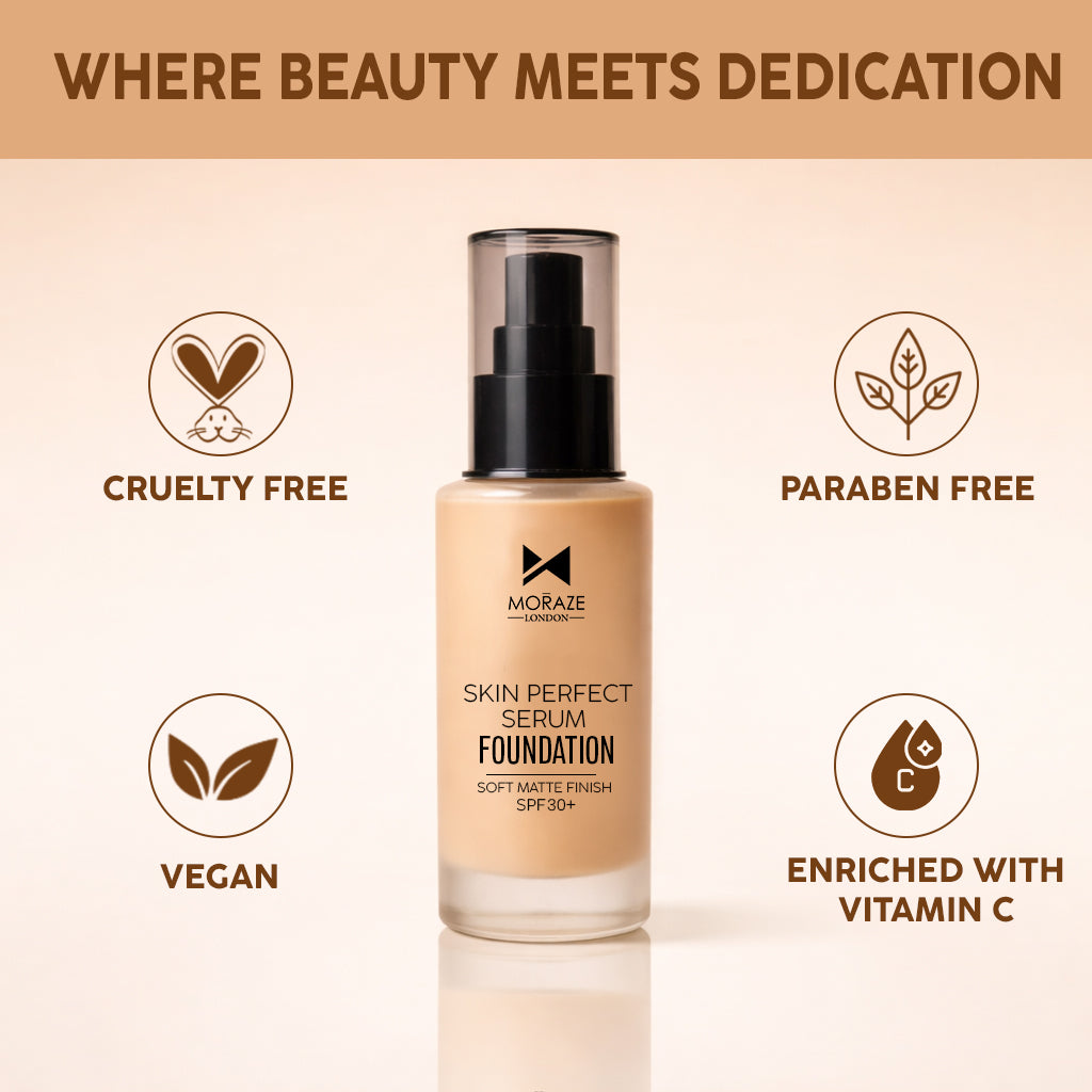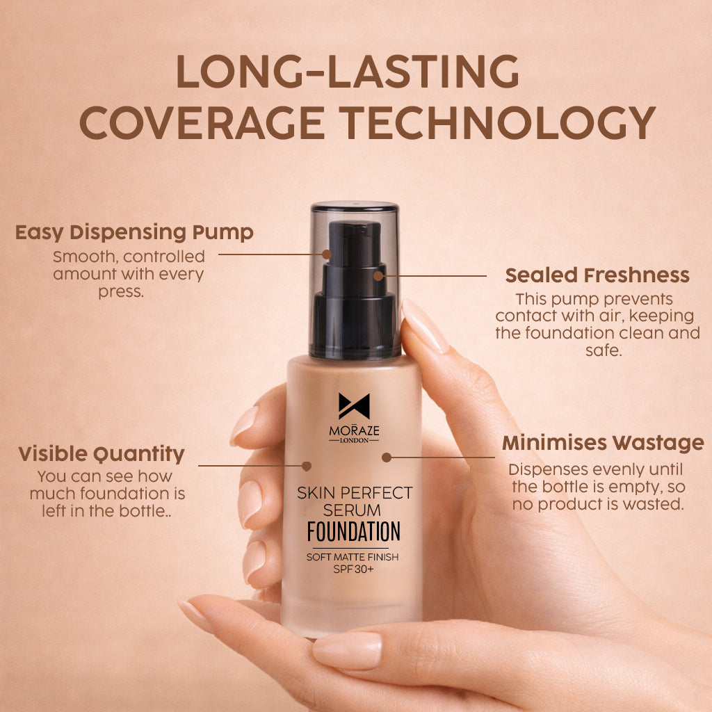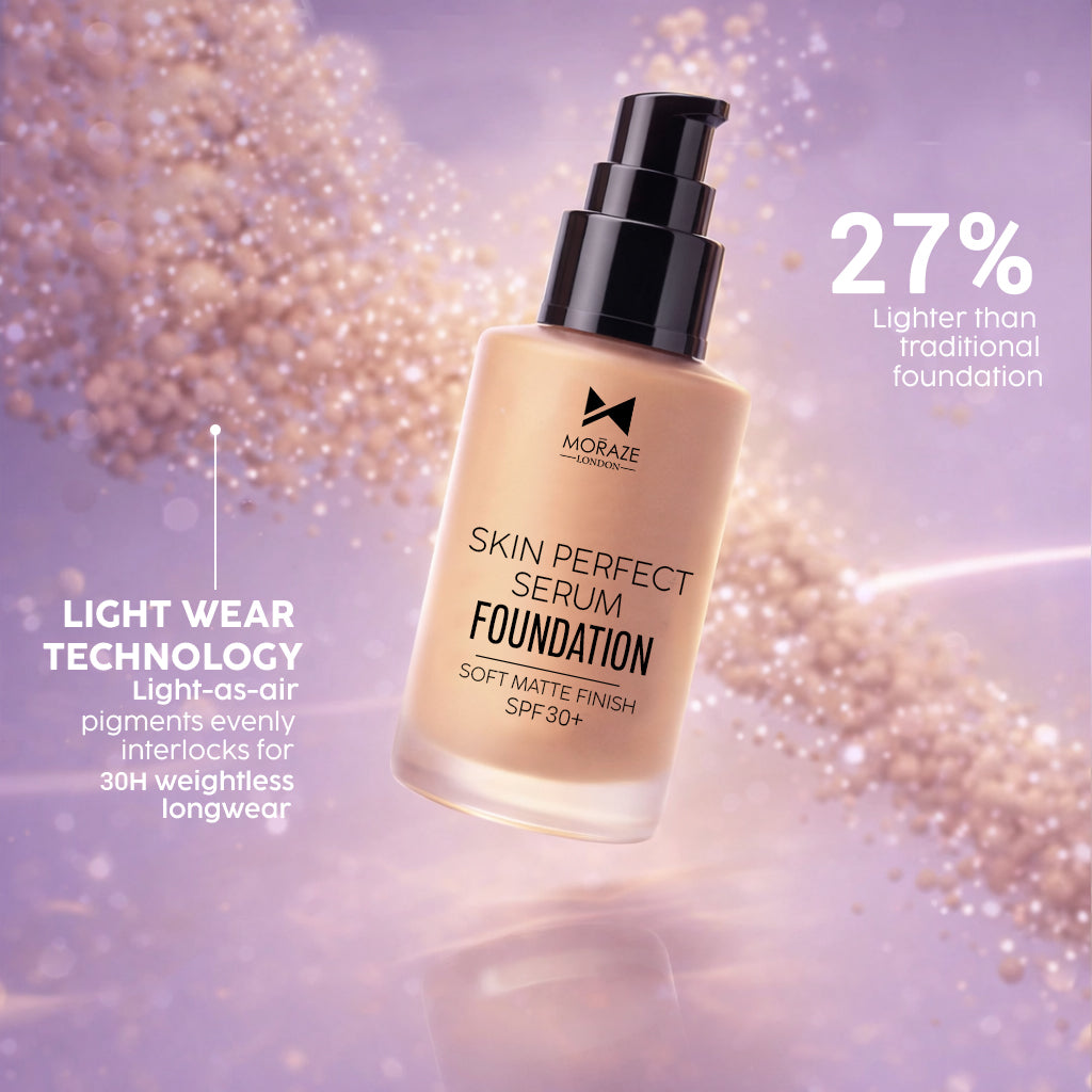 يوفر كريم الأساس Moraze Skin Perfect لمسة نهائية ناعمة ومتجانسة اللون بمظهر طبيعي يشبه البشرة. تمزج تركيبته خفيفة الوزن بسهولة لإخفاء المسام والعيوب مع توفير تغطية قابلة للبناء من متوسطة إلى كاملة. يدوم طويلاً ومساميًا، ويتحكم في الزيوت الزائدة ويحافظ على المكياج منتعشًا وخاليًا من التجاعيد ومريحًا طوال اليوم للحصول على قاعدة خالية من العيوب.