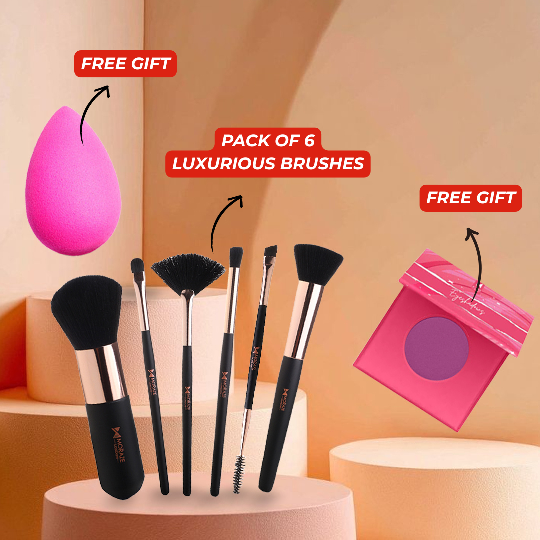 Ultra Soft Set of 6 Premium Makeup Brushes. (FREE Eyeshadow Palette + Blender)
