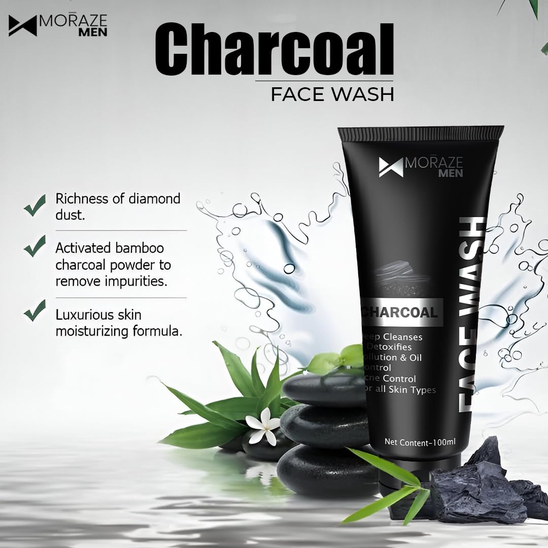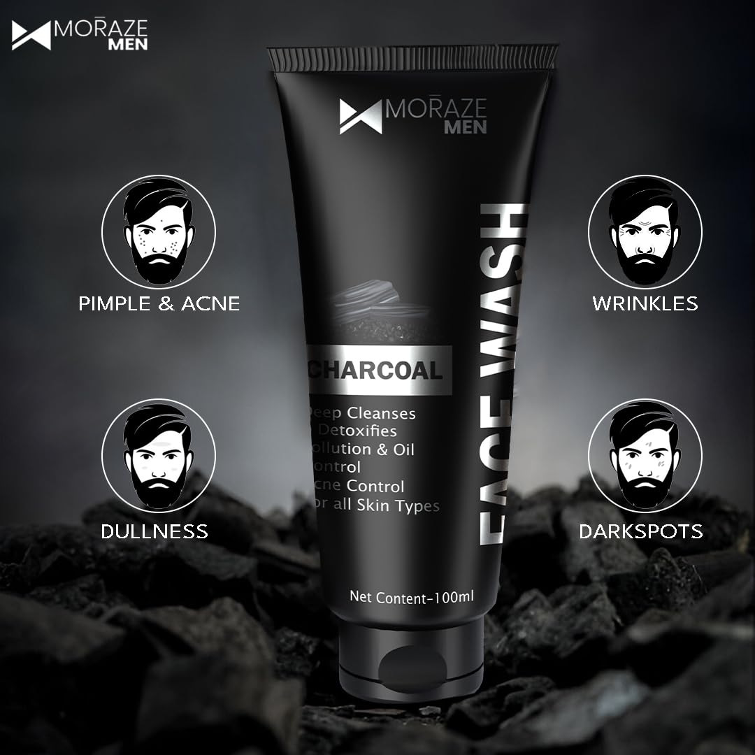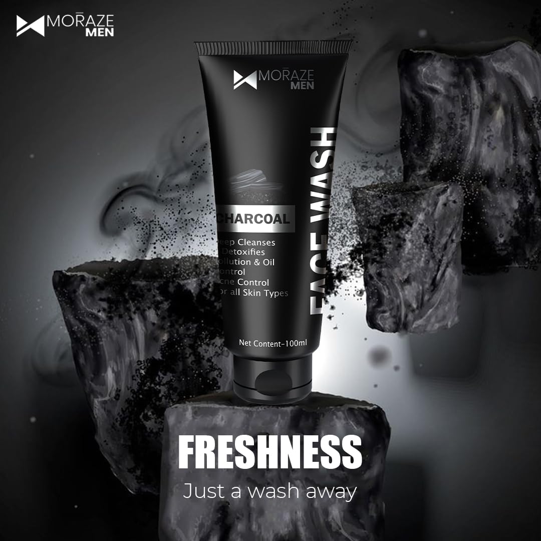 Kickstart your mornings with Charcoal Face Wash for a fresh glow. Charcoal present in this natural face wash deeply cleanses and awakens the skin leaving it with a fresh glow. The Charcoal Face Wash is packed with natural ingredients like Charcoal, White Water Lily, Seaweed, and Aloe Vera. Charcoal deeply cleanses, fights free radicals, and leaves your skin with a fresh glow. Charcoal reduces redness, inflammation, and puffiness. White Water Lily soothes inflammation and reduces fine lines. Aloe Vera nourishes the skin and reduces dark spots. Aloe Vera together with Seaweed also hydrates the skin. This face wash also gets rid of dirt, oil, and impurities effortlessly. Best face wash for men & women and it exudes the heavenly charcoal. It's a gentle face wash that keeps the skin moisturized for up to 24 hours. It is suitable for all skin types and is a perfect pick for every morning. Charcoal Face Wash is easy to use. Just take a small amount of the face wash on your palm and massage it on your damp face in circular motions. Once you are done, thoroughly wash the face for a fresh glow. Enjoy a brighter and more radiant complexion and fresh looking skin with the Moraze Men Charcoal Anti-Pollution Face Wash. The charcoal in the anti-pollution face wash cleans your skin from deep within and unclogs pores to reverse the damage caused by everyday aggressors like pollution, dirt, and dust. The charcoal reduces dullness, refreshes your skin, and gives you long lasting radiance and freshness. The Charcoal Moraze Men Face Wash is perfect for those who have an active lifestyle and want to feel fresh all day. For best results, use twice daily and follow with the Anti-Pollution Face Wash for all-day radiance.