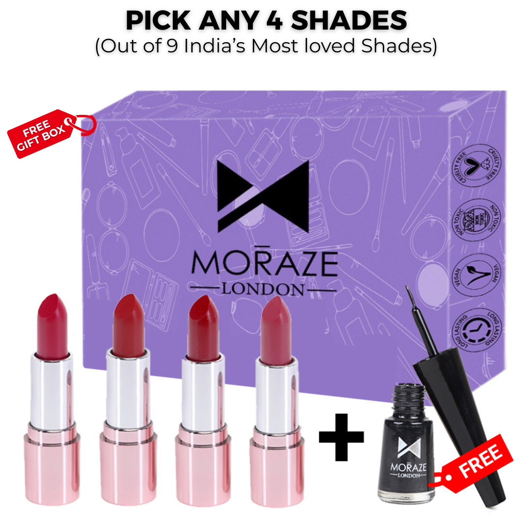 4 Glamorous Lipstick Kit - SPF 25 + FREE Intense Black Eyeliner